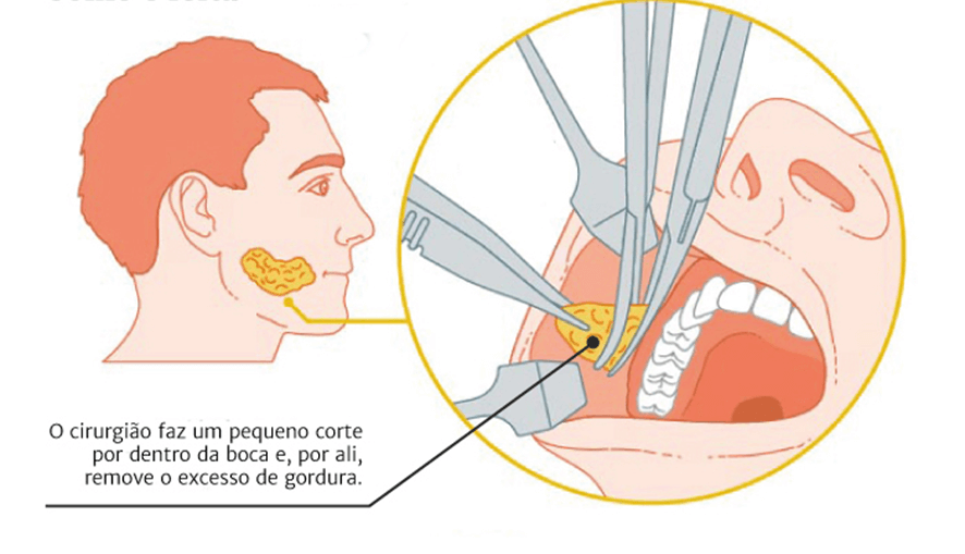 Nesta cirurgia é feita uma incisão na parte interna das bochechas para possibilitar a remoção da bolsa gordurosa de Bichat. Em razão da localização da incisão a cicatriz fica imperceptível.