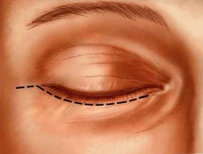 A blefaroplastia é feita com pequenas incisões na dobra das pálpebras superiores e abaixo dos cílios inferiores, de modo a retirar o excesso de pele e gordura