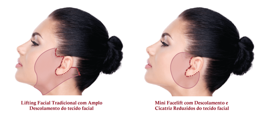 Na maioria das vezes, o mini lifting do rosto é feito a partir de uma incisão que se inicia anteriormente a orelha e estende-se até a parteposterior da mesma.